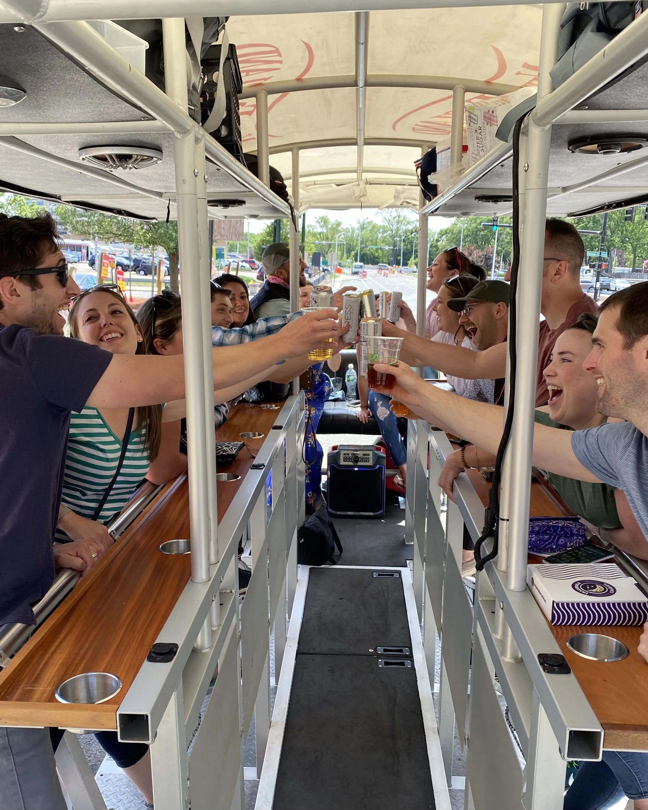 In terms of price, it is definitely different. The Elm City Party Bike costs between $475 and $525 for a private party of 8 to 15 people. Alternatively, you can join a public tour for an individual starting price of $45. The 2-hour reservation will allow you to stop at as many bars as you’d like, but doesn’t include any drinks or food. However, you’re allowed to bring as much alcohol as you’d like from home and drink while riding.